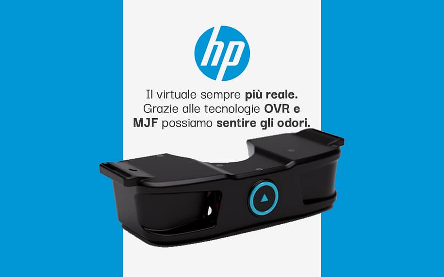 La start-up OVR Technology è ricorsa alla stampa 3D Multi Jet Fusion di HP per emettere microscariche di liquidi profumati in una piccola area posta sotto il naso dell’utente. In precedenza, aveva realizzato diversi prototipi di scocche con una stampante 3D FDM (Fused Deposition Modelling), ma senza riuscire a ottenere i risultati desiderati per i tipi di geometrie di cui avevano bisogno. Le molecole di odore si depositavano nelle piccole scanalature generate dal processo FDM, impedendone la rimozione completa dalla scocca.